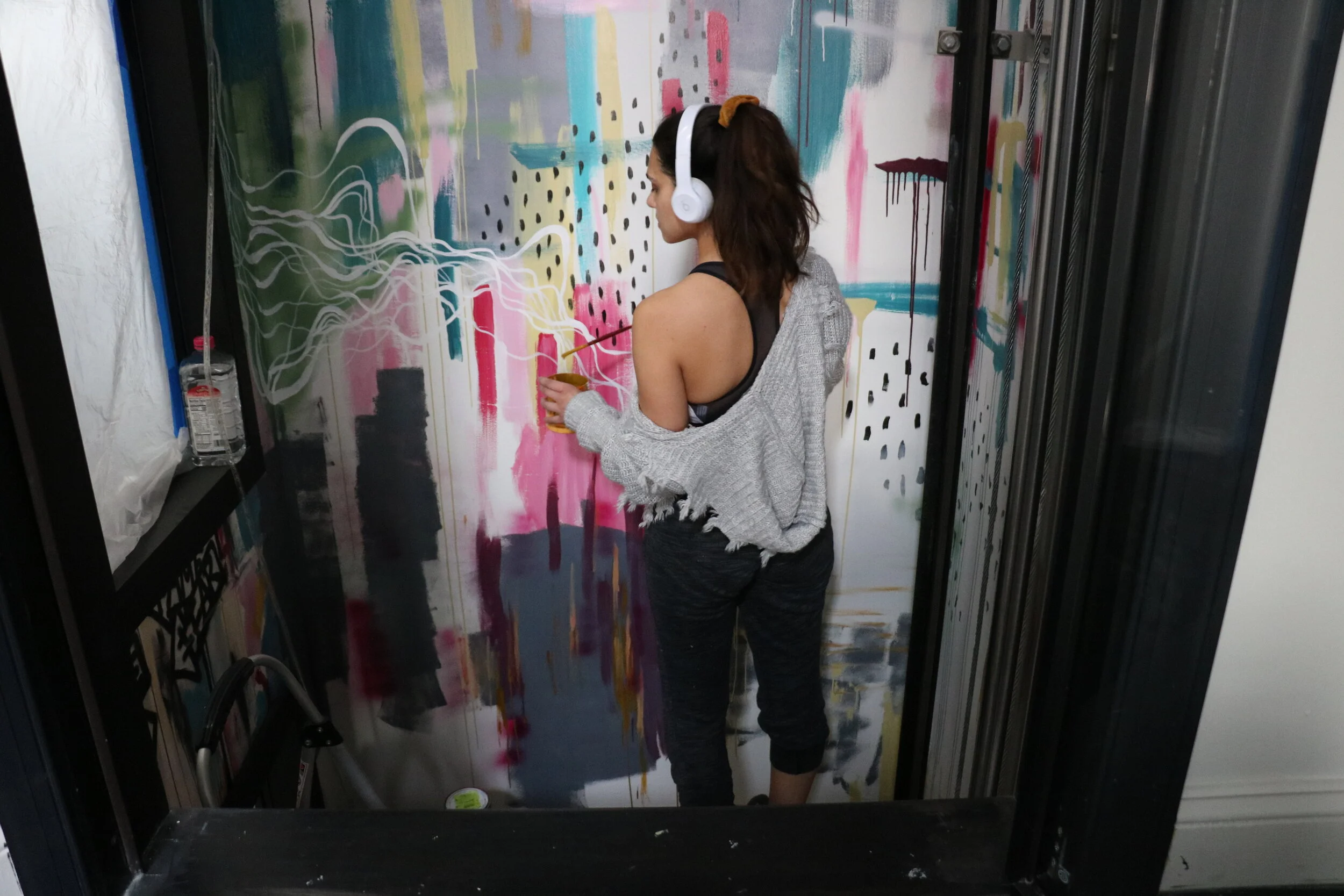 five story elevator shaft mural - a 360 degree experience from top to bottom.